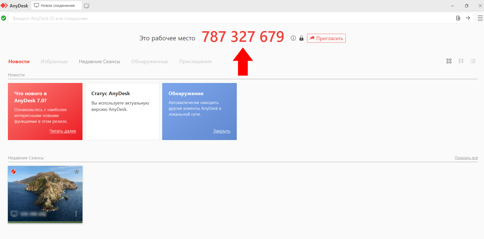 В левой части открывшегося окна будет отображен адрес Вашего ПК (в большинстве случаев состоит из 9 цифр), который Вам нужно будет предоставить технической поддержке для подключения к Вашему рабочему столу: